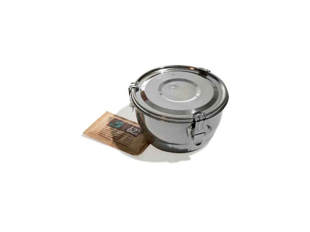 Dóza je vyrobena z potravinářské nerezové oceli, která nepropouští světlo, neabsorbuje pachy a nijak neovlivňuje chuť ani vůni uloženého materiálu. Díky 100% vzduchotěsnému uzávěru zůstává vnitřní prostředí stabilní – přesně to, co po sušení potřebujete.