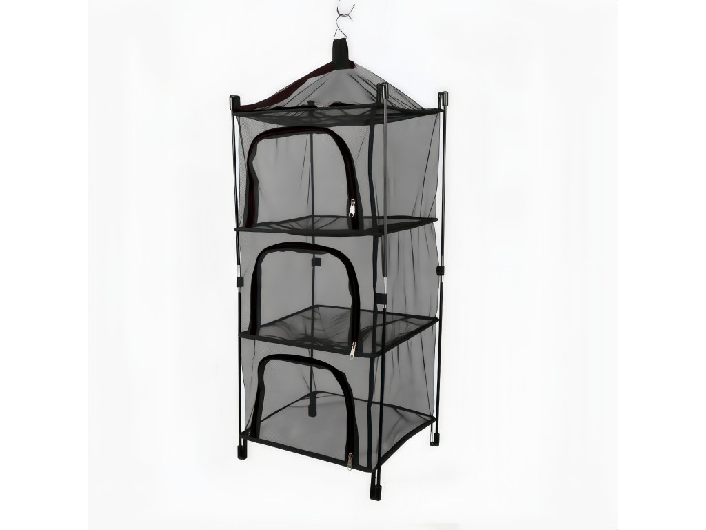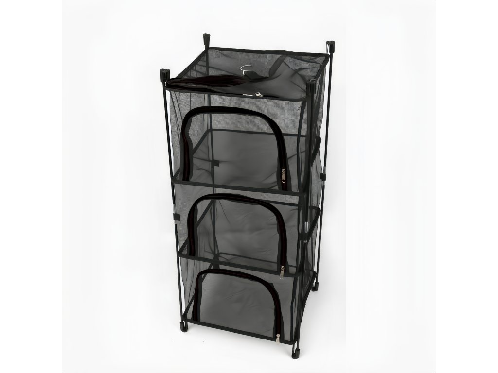 Sušící síť CAMPING - hranatá černá se zipem, 3 patra