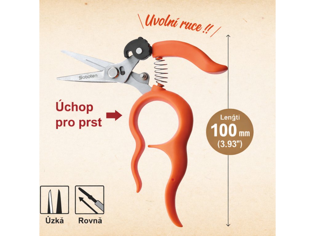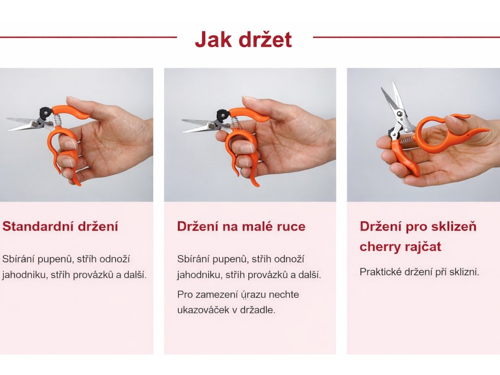 Vhodné pro detailní práci – ideální na jemné stonky a sklizeň drobných plodů